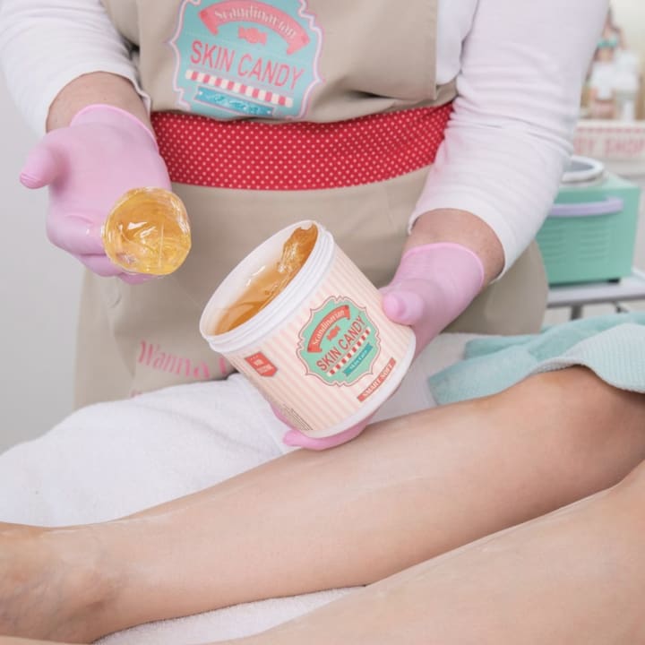 Ihokarvojen poisto kotimaisella Skin Candy menetelmällä, joka samalla kuorii ja hoitaa ihoa.